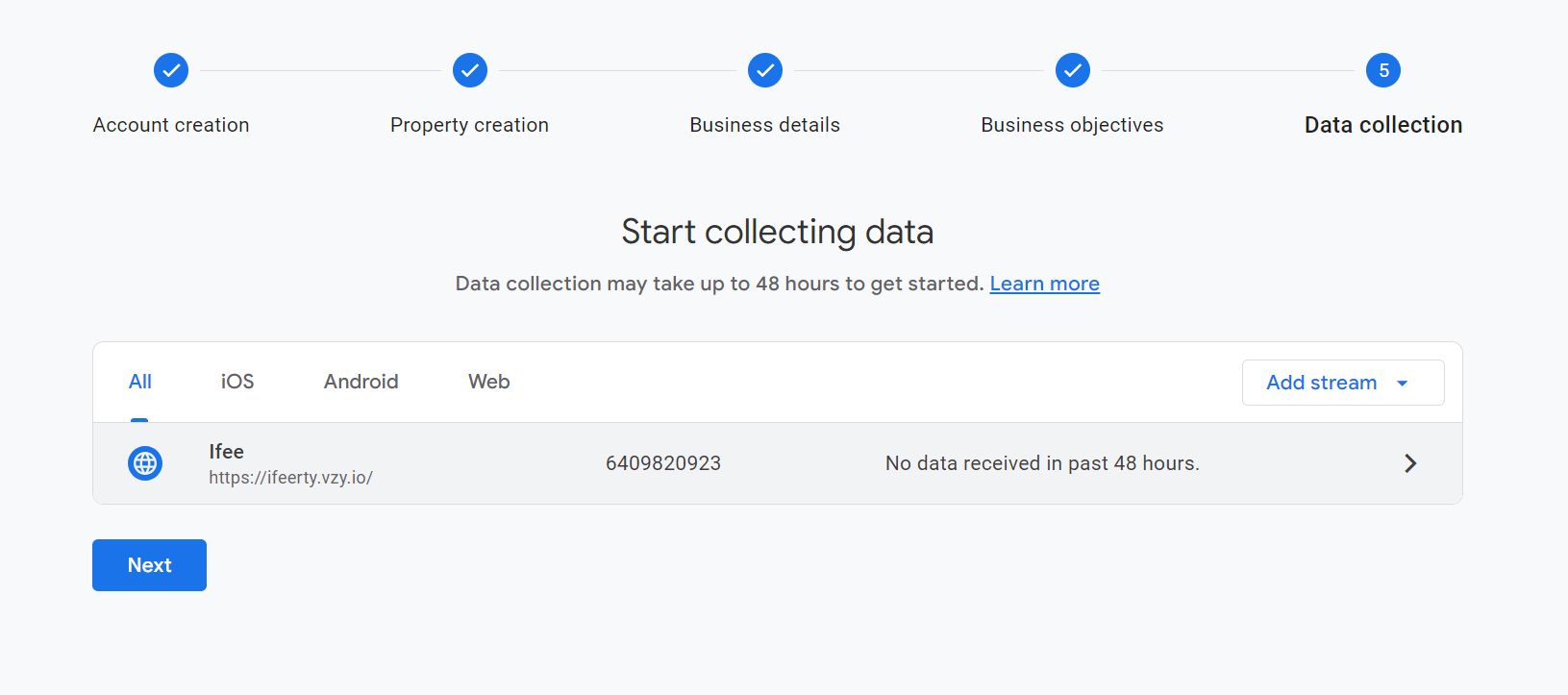 Tap on add stream and select web (To track a website)